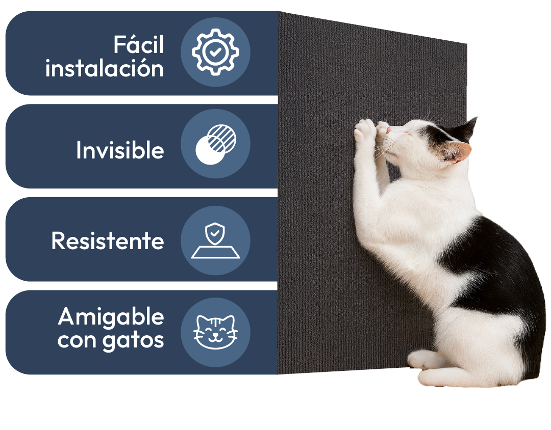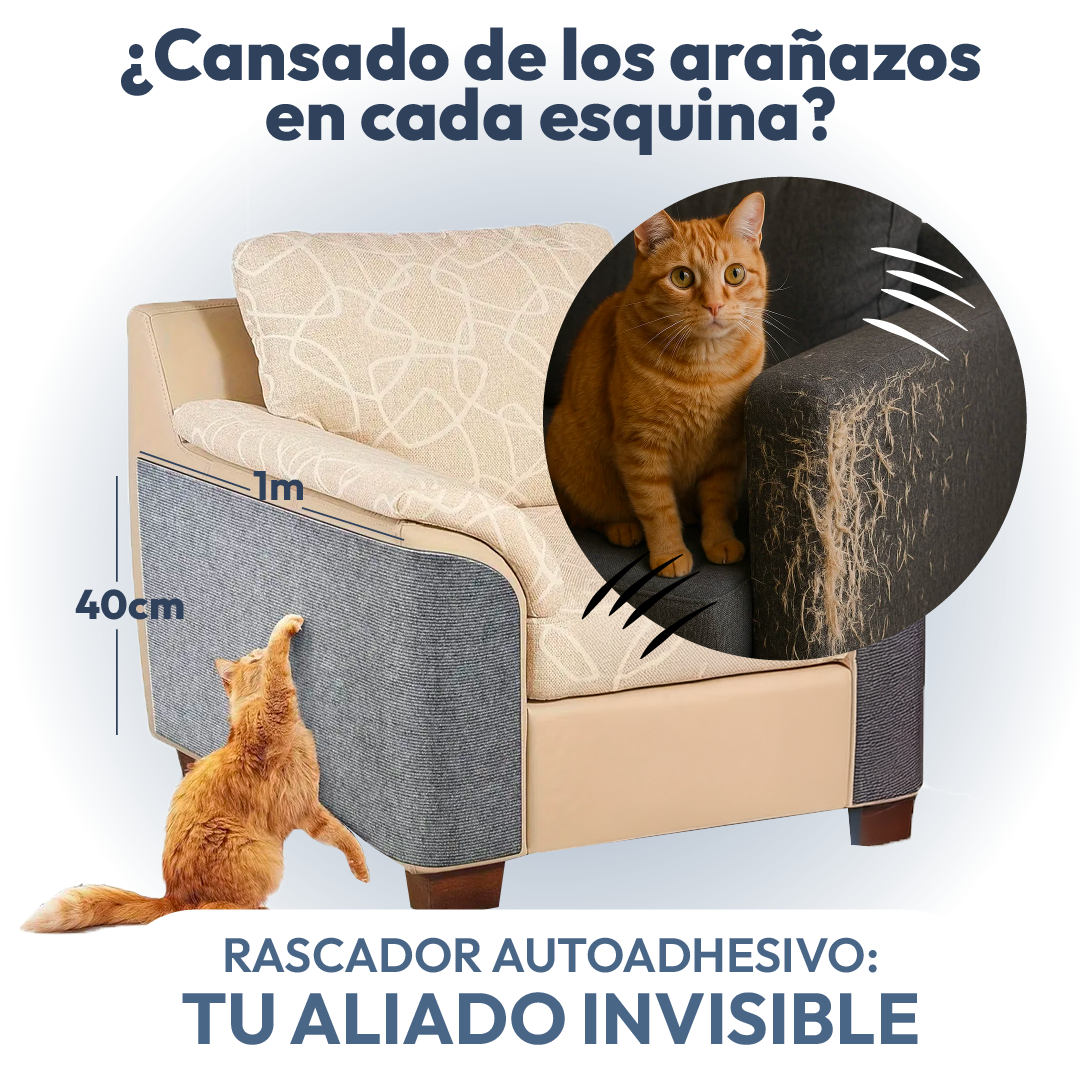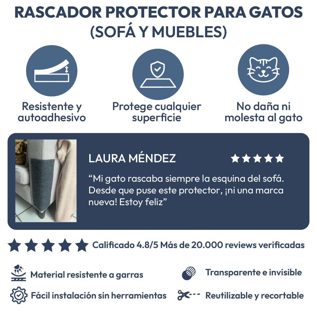 El rascador protector está hecho con materiales ultra resistentes al desgaste. Su adhesivo fuerte se adhiere firmemente sin dañar sofá, Funciona porque redirecciona el instinto natural de rascar, ofreciendo una superficie segura mientras tus muebles permanecen intactos.