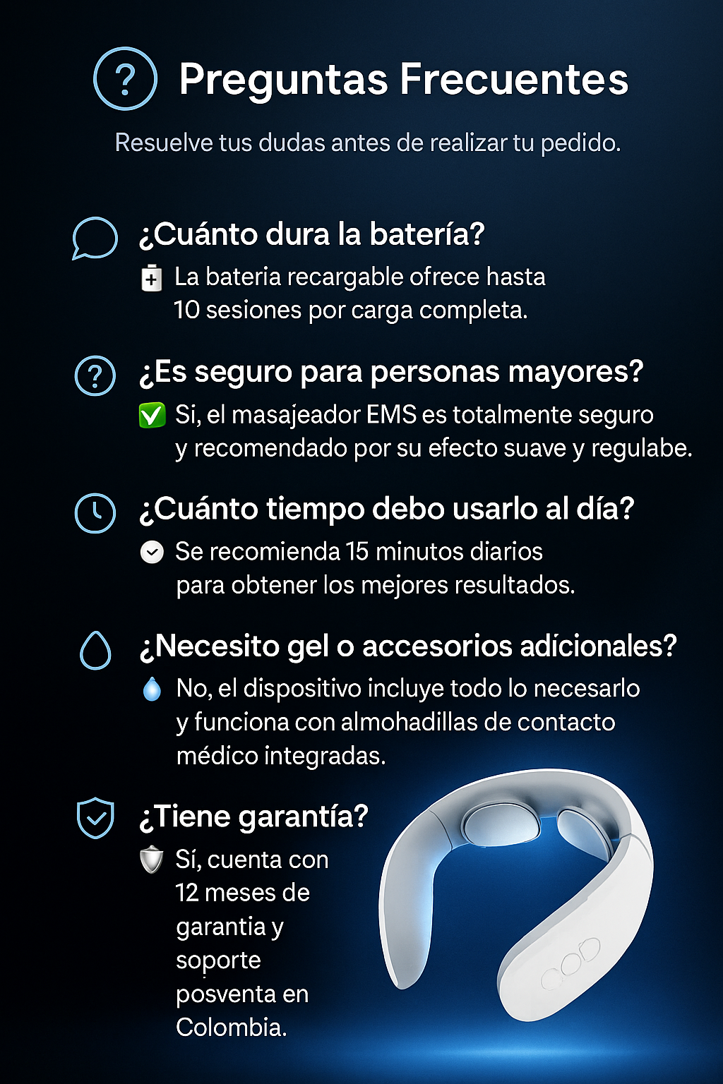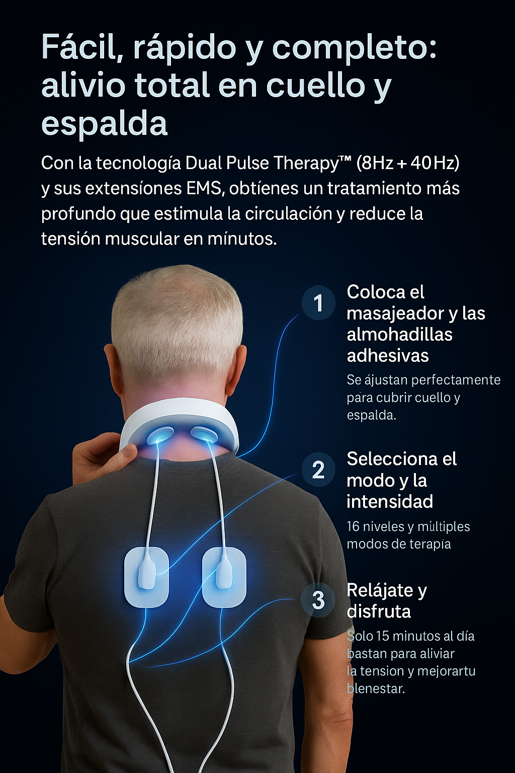 “Mi médico me recomendó buscar formas naturales de controlar el estrés y este masajeador ha sido un gran aliado. Relaja el cuello, mejora la circulación y me ayuda a mantenerme tranquilo después de un día largo 🧠💪”
