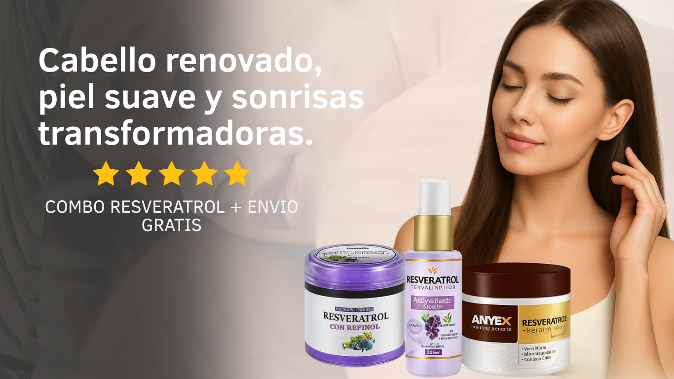 Con el ResveraGlow Set recuperas el control: la mascarilla elimina frizz y sella puntas, el exfoliante devuelve suavidad y vitalidad a tus labios, y el sérum rejuvenece tu piel contra arrugas y fatiga. Todo en una rutina simple que ataca de raíz los problemas más comunes de cabello, piel y labios.